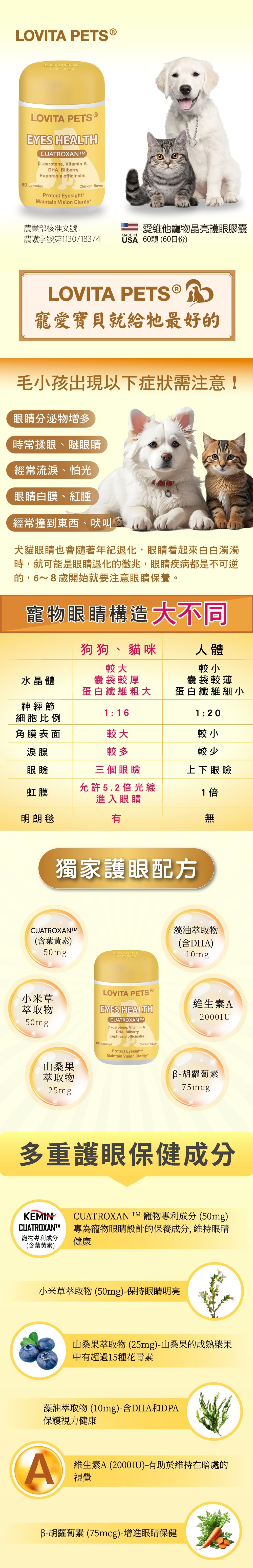 ◎ 特別添加小米草萃取物、山桑果萃取物、藻油萃取物(含DHA)、維生素A、β-胡蘿蔔素