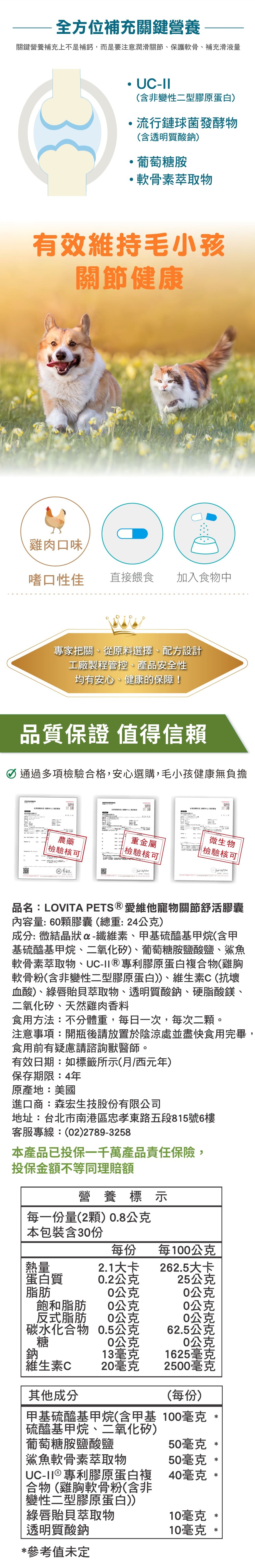 ◎ 特別添加MSM、葡萄糖胺鹽酸鹽、鯊魚軟骨素萃取物、綠唇貽貝萃取物、透明質酸鈉
